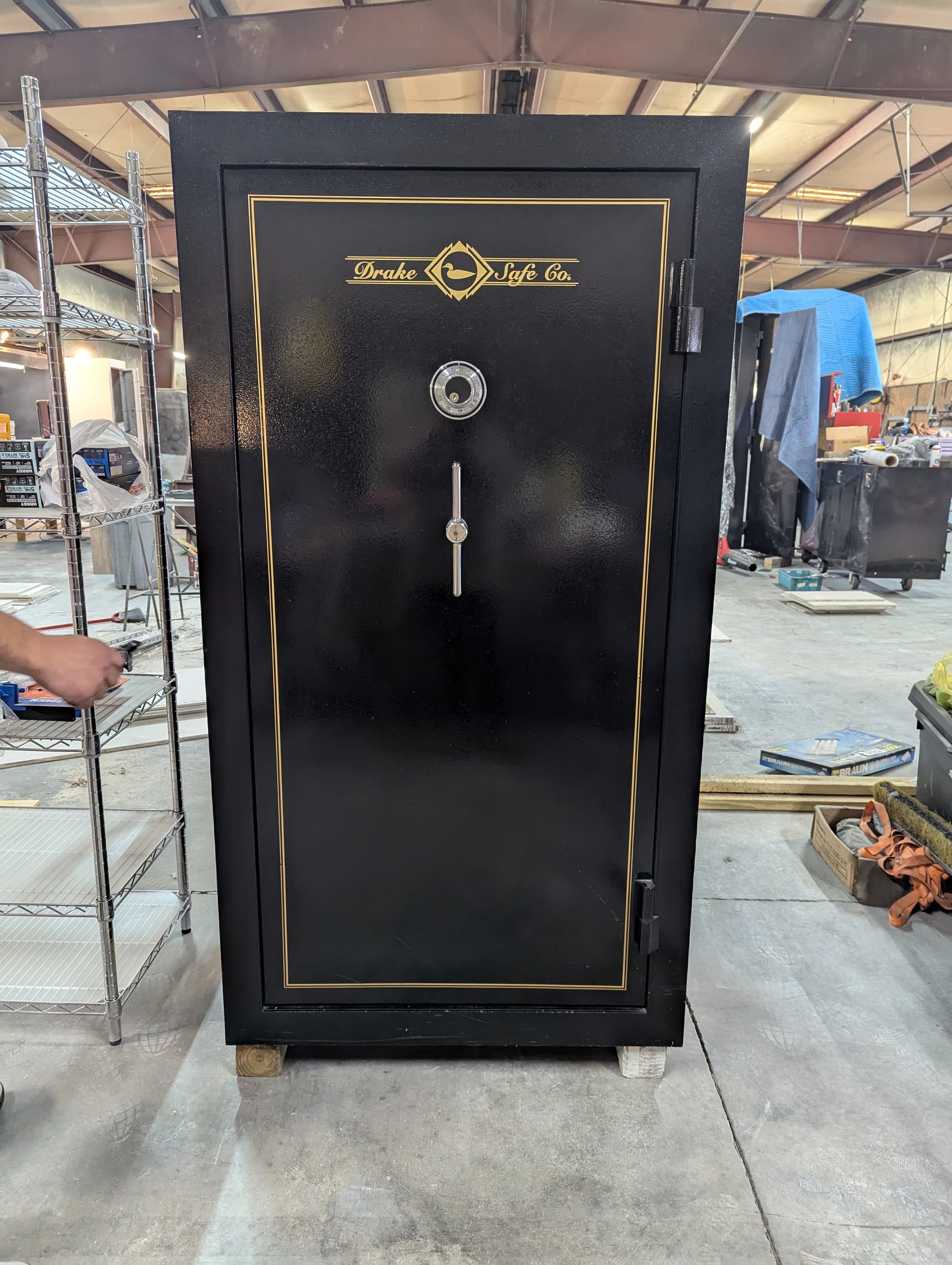 Crafted from robust 1/4-inch thick steel, weighing a mighty 1350 pounds, and fortified with 5/8 fireboard, the DS-36UU ensures superior fire resistance, enduring temperatures up to 1330 degrees for 30 minutes. Measuring 71 3/4" tall x 35 3/4" wide x 25 1/4" deep, the DS-36UU offers four interior options, including three side shelf options with 9,18, and 27 long-guns, or an all-gun interior that accommodates up to 36 long guns. This safe features two extra adjustable top storage shelves.