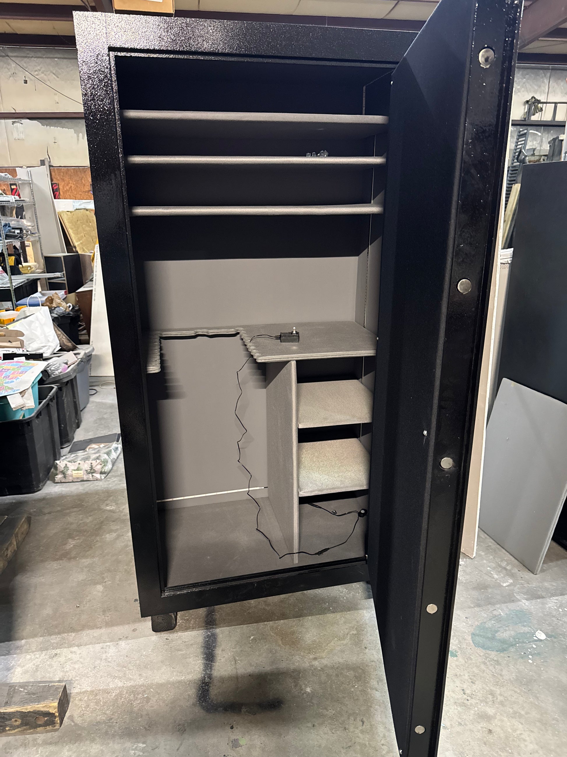 Crafted from robust 1/4-inch thick steel, weighing a mighty 1500 pounds, and fortified with 5/8 fireboard, the DS-40UU ensures superior fire resistance, enduring temperatures up to 1330 degrees for 30 minutes. Measuring 71 3/4" tall x 39 3/4" wide x 25 1/4" deep, the DS-40UU offers five interior options, including four side shelf options with 9,18, 27, or 36 long-guns, or an all-gun interior that accommodates up to 45 long guns. This safe features three adjustable top storage shelves.